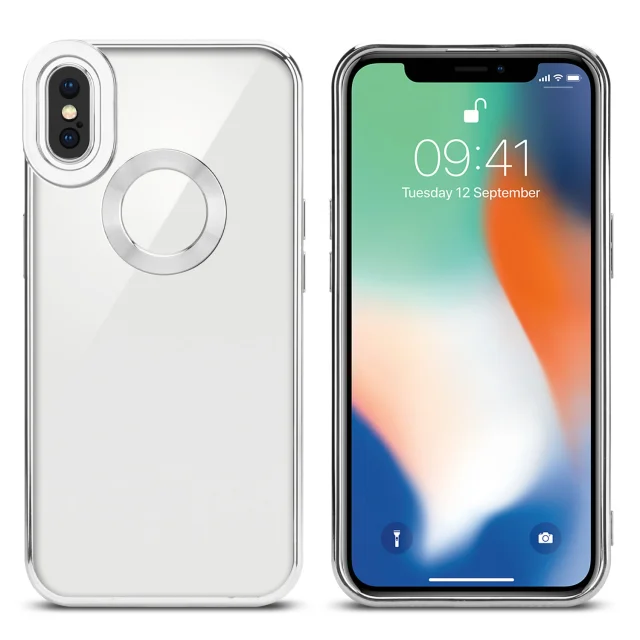 CADORABO Ohišje, združljiv z Apple v prozorni - srebrni - zaščitni pokrov, narejen iz fleksibilnega silikona TPU s kromiranjem
