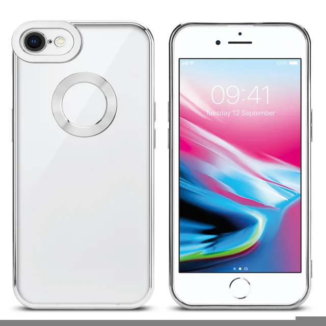CADORABO Ohišje, združljiv z Apple v prozorni - srebrni - zaščitni pokrov, narejen iz fleksibilnega silikona TPU s kromiranjem
