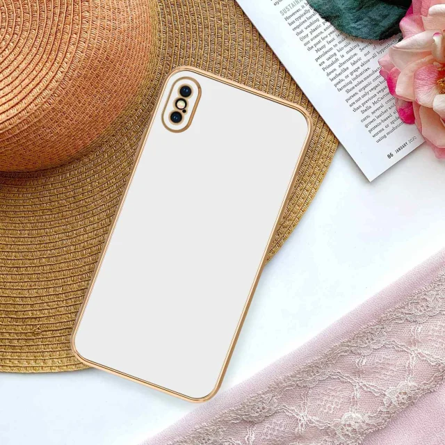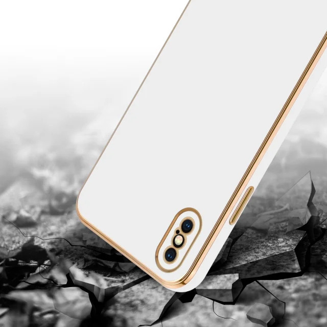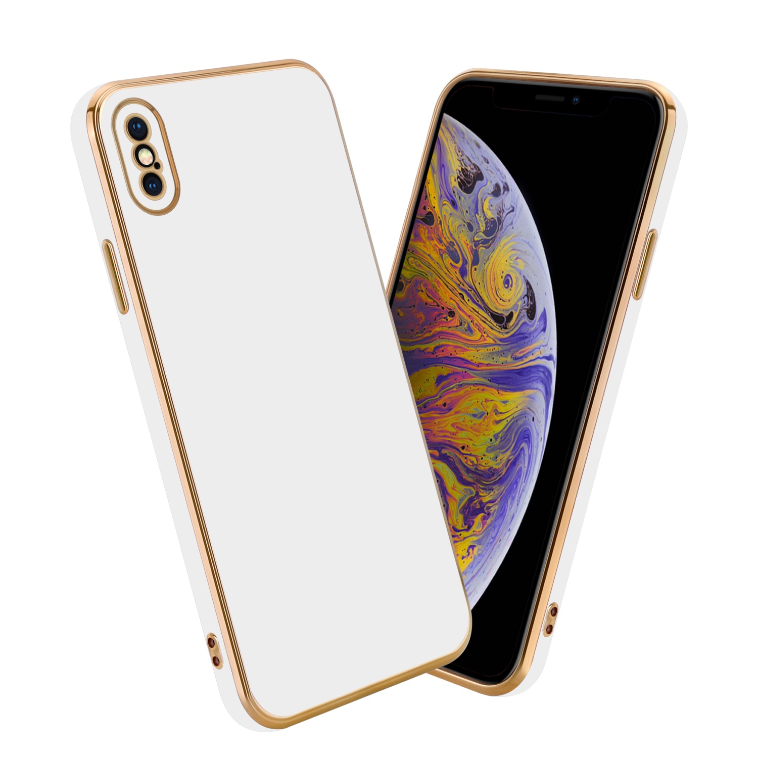 CADORABO Ohišje, združljiv z Apple v sijajnem belem - zlati - zaščitni pokrov iz fleksibilnega silikona TPU in z zaščito pred kamero