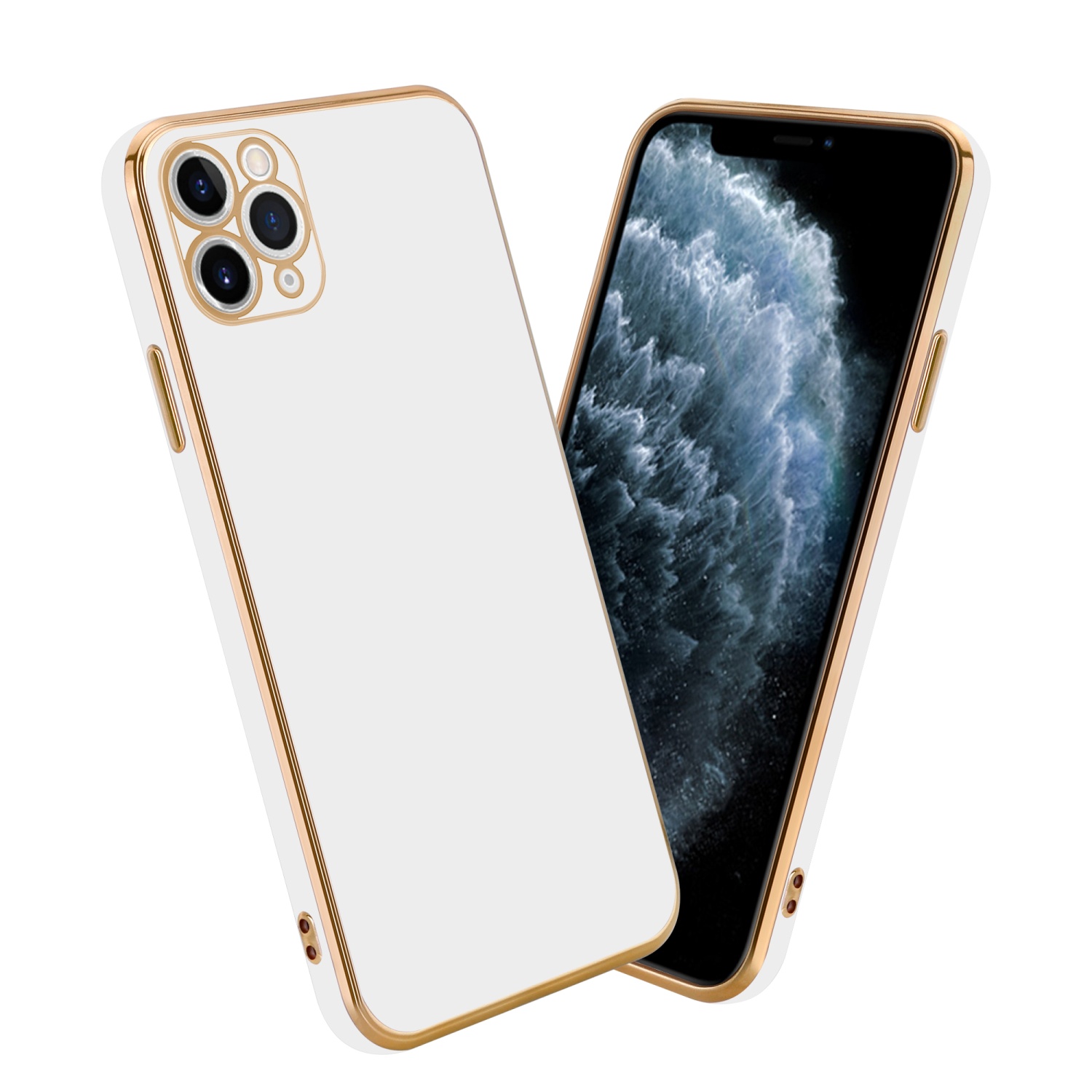 CADORABO Ohišje, združljiv z Apple v sijajnem belem - zlati - zaščitni pokrov iz fleksibilnega silikona TPU in z zaščito pred kamero