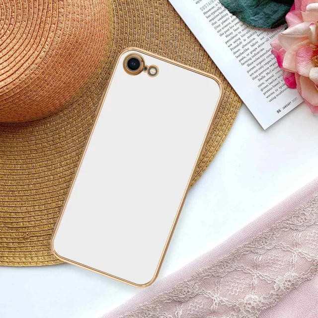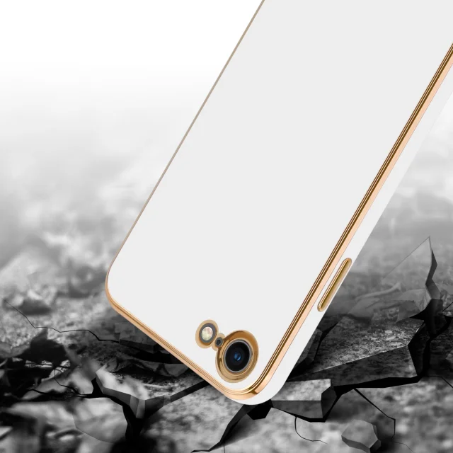 CADORABO Ohišje, združljiv z Apple v sijajnem belem - zlati - zaščitni pokrov iz fleksibilnega silikona TPU in z zaščito pred kamero