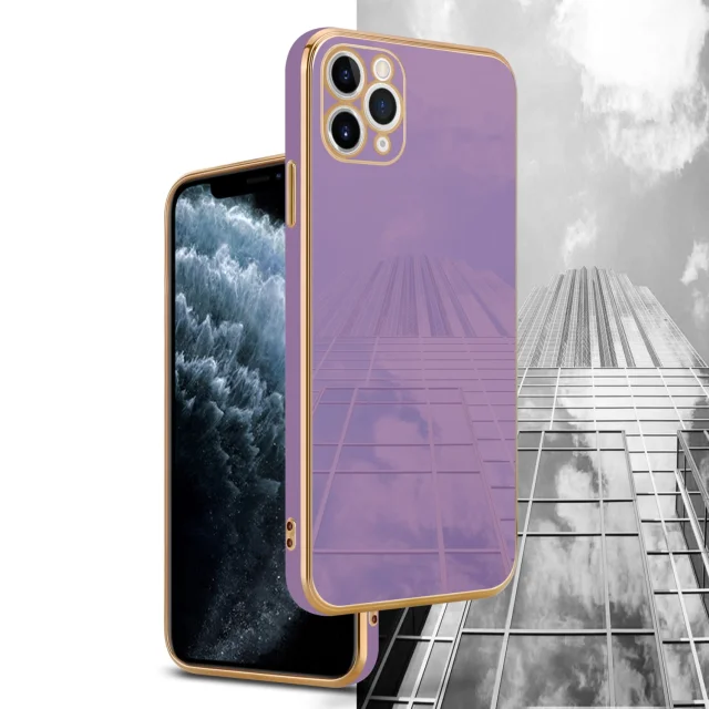 CADORABO Ohišje, združljiv z Apple v sijajnem vijoličnem - zlati - zaščitni pokrov iz fleksibilnega silikona TPU in z zaščito pred kamero