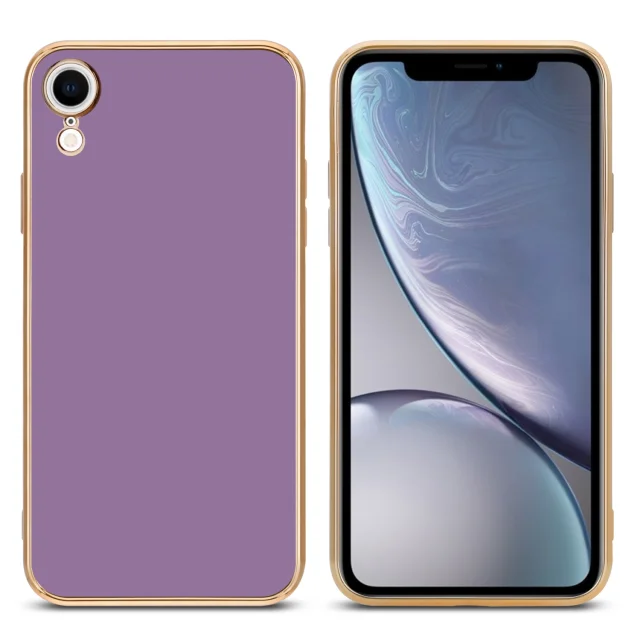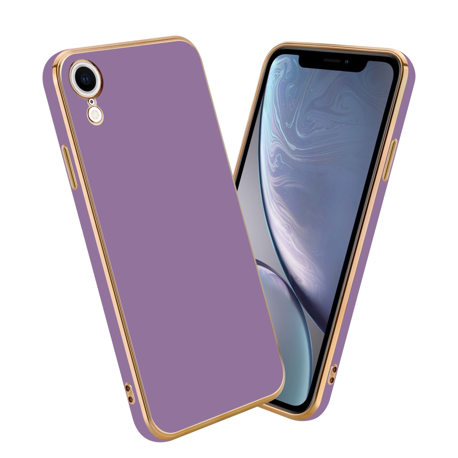 CADORABO Ohišje, združljiv z Apple v sijajnem vijoličnem - zlati - zaščitni pokrov iz fleksibilnega silikona TPU in z zaščito pred kamero
