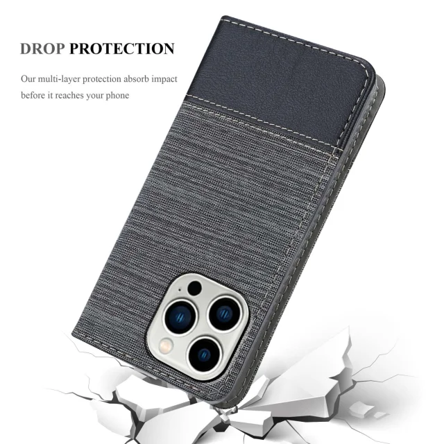 CADORABO Ohišje, združljiv z Apple v sivi črni barvi - zaščitni pokrov z magnetnim zapiranjem, stoječo funkcijo in režo za kartico