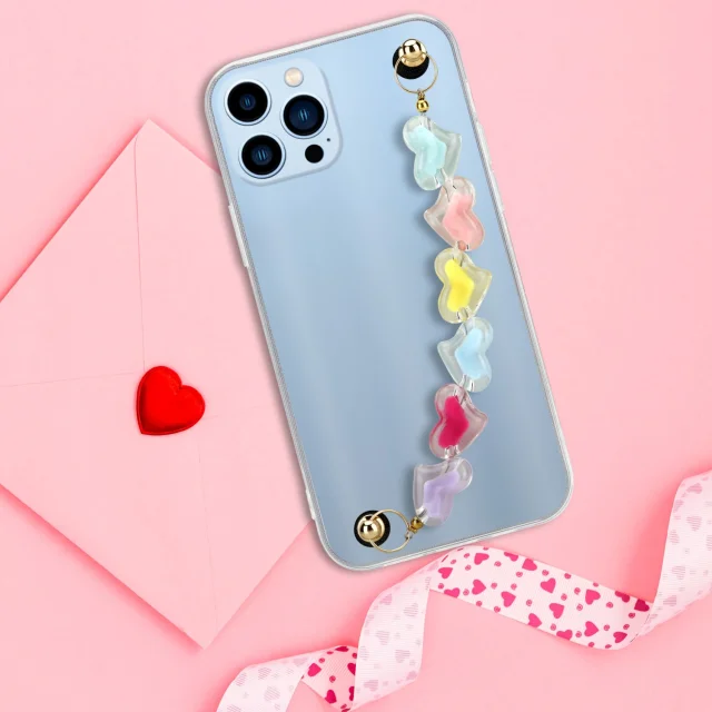 CADORABO Ohišje, združljiv z Appleom v prozornih s pisanimi srci - zaščitni pokrov iz fleksibilnega silikona TPU z zapestno verigo