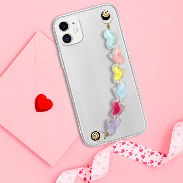 CADORABO Ohišje, združljiv z Appleom v prozornih s pisanimi srci - zaščitni pokrov iz fleksibilnega silikona TPU z zapestno verigo