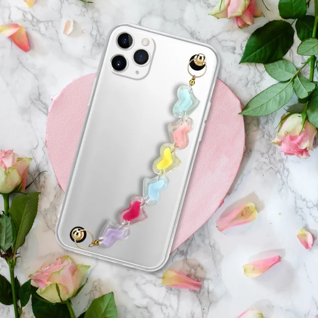 CADORABO Ohišje, združljiv z Appleom v prozornih s pisanimi srci - zaščitni pokrov iz fleksibilnega silikona TPU z zapestno verigo