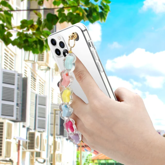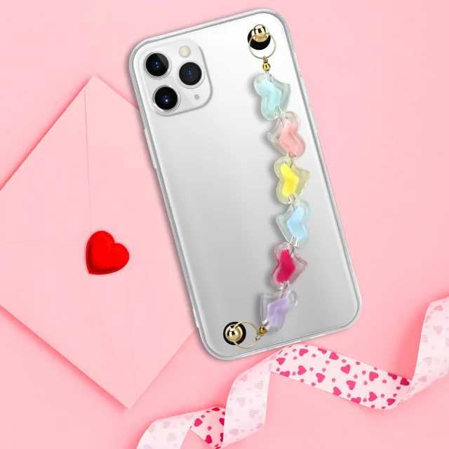 CADORABO Ohišje, združljiv z Appleom v prozornih s pisanimi srci - zaščitni pokrov iz fleksibilnega silikona TPU z zapestno verigo