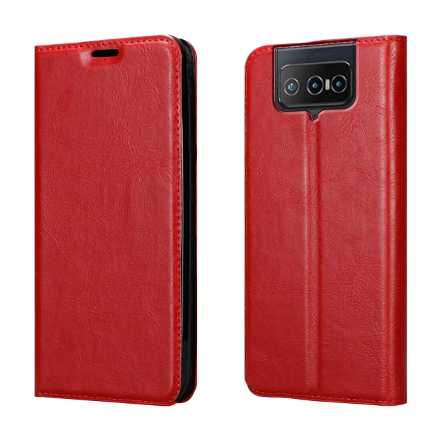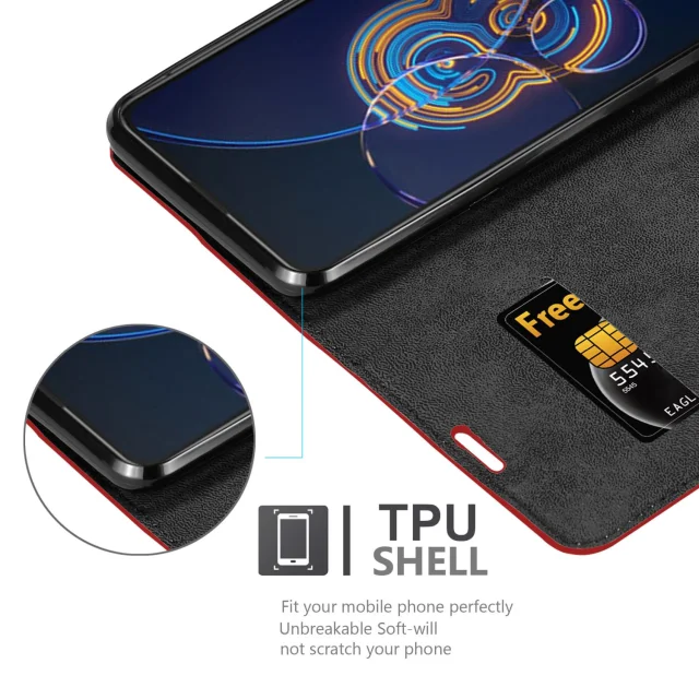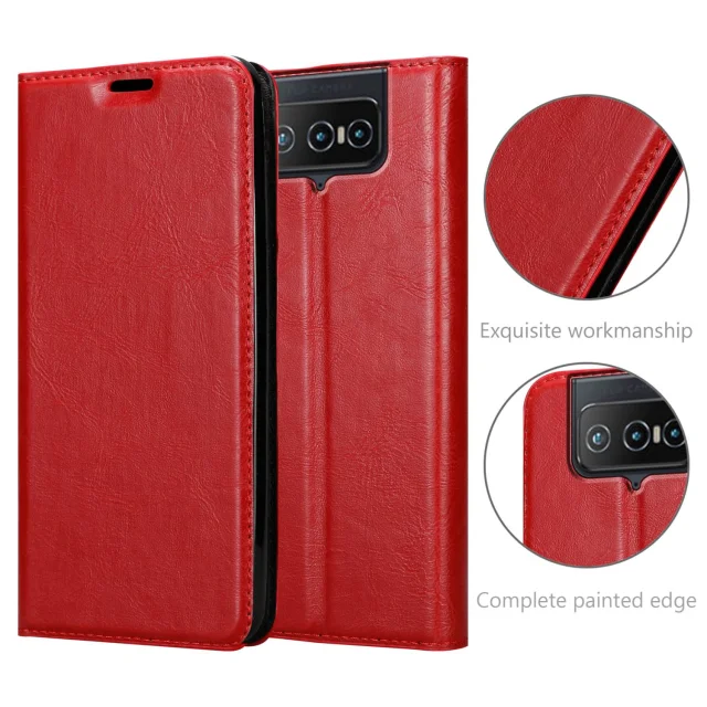 CADORABO Ohišje, združljiv z ASUS v Apple Red - Zaščitni pokrov z magnetnim zapiranjem, stoječo funkcijo in režo za kartico