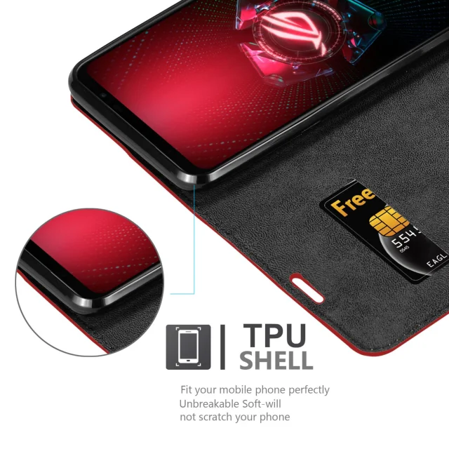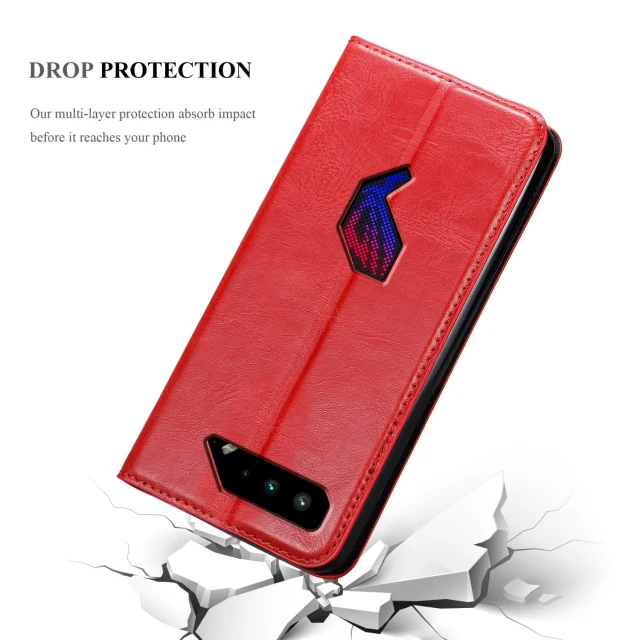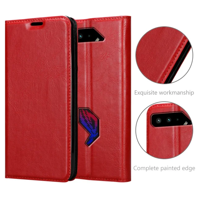 CADORABO Ohišje, združljiv z ASUS v Apple Red - Zaščitni pokrov z magnetnim zapiranjem, stoječo funkcijo in režo za kartico