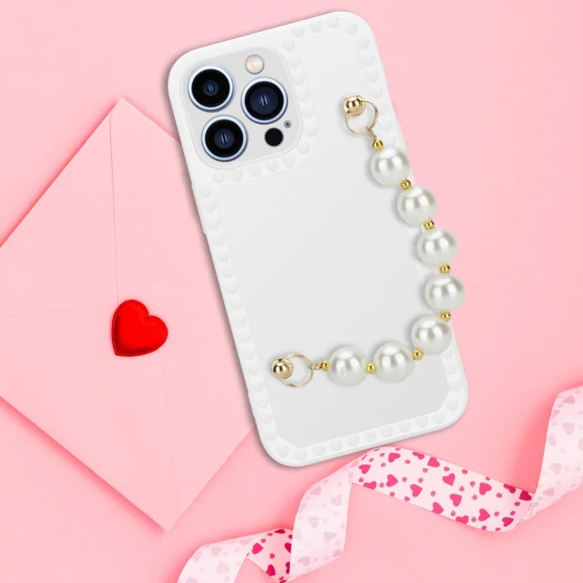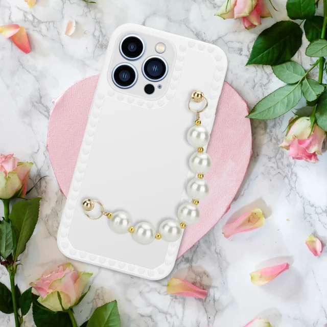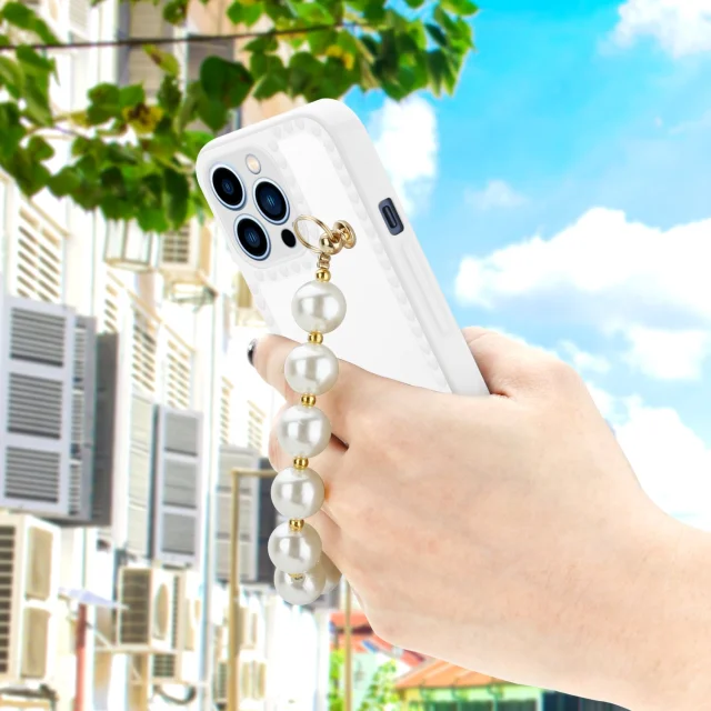 CADORABO Ohišje, združljiv z jabolkom v beli barvi z biseri - zaščitni pokrov iz fleksibilnega silikona TPU z zapestno verigo