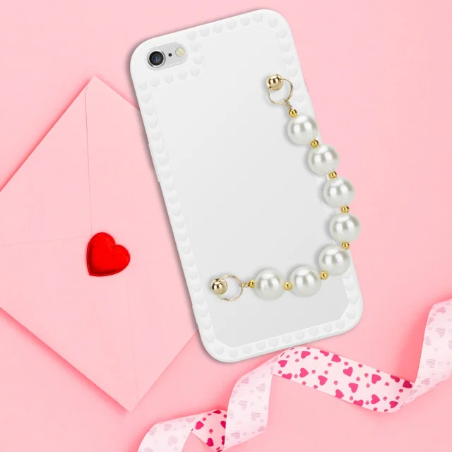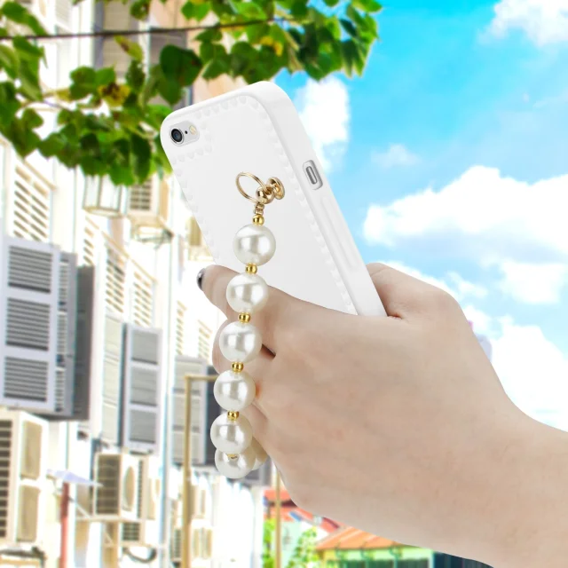 CADORABO Ohišje, združljiv z jabolkom v beli barvi z biseri - zaščitni pokrov iz fleksibilnega silikona TPU z zapestno verigo