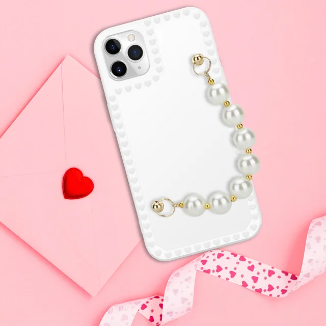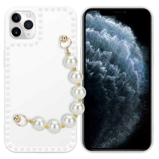 CADORABO Ohišje, združljiv z jabolkom v beli barvi z biseri - zaščitni pokrov iz fleksibilnega silikona TPU z zapestno verigo
