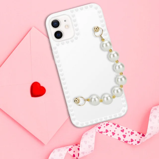 CADORABO Ohišje, združljiv z jabolkom v beli barvi z biseri - zaščitni pokrov iz fleksibilnega silikona TPU z zapestno verigo
