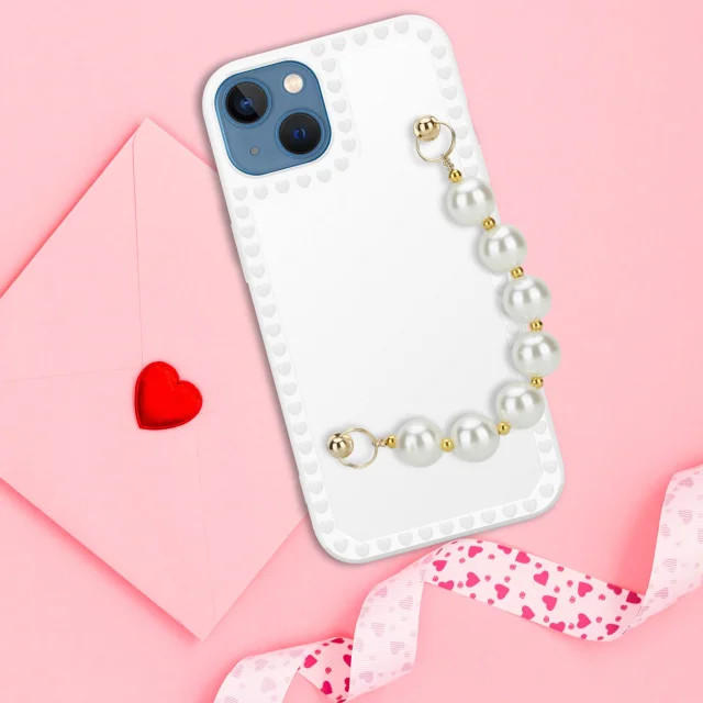 CADORABO Ohišje, združljiv z jabolkom v beli barvi z biseri - zaščitni pokrov iz fleksibilnega silikona TPU z zapestno verigo