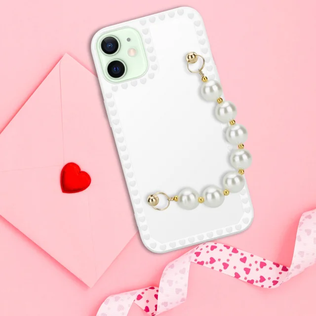 CADORABO Ohišje, združljiv z jabolkom v beli barvi z biseri - zaščitni pokrov iz fleksibilnega silikona TPU z zapestno verigo