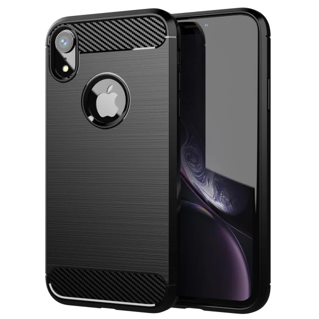 CADORABO Ohišje, združljiv z jabolkom v brušenem črni barvi - zaščitni pokrov iz fleksibilnega silikona TPU v videzu iz nerjavečega jekla ogljika