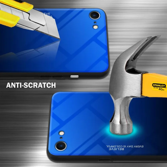 CADORABO Ohišje, združljiv z jabolkom v modri barvi - črni - dvobarvni zaščitni pokrov iz silikona TPU in hrbta iz kaljenega stekla