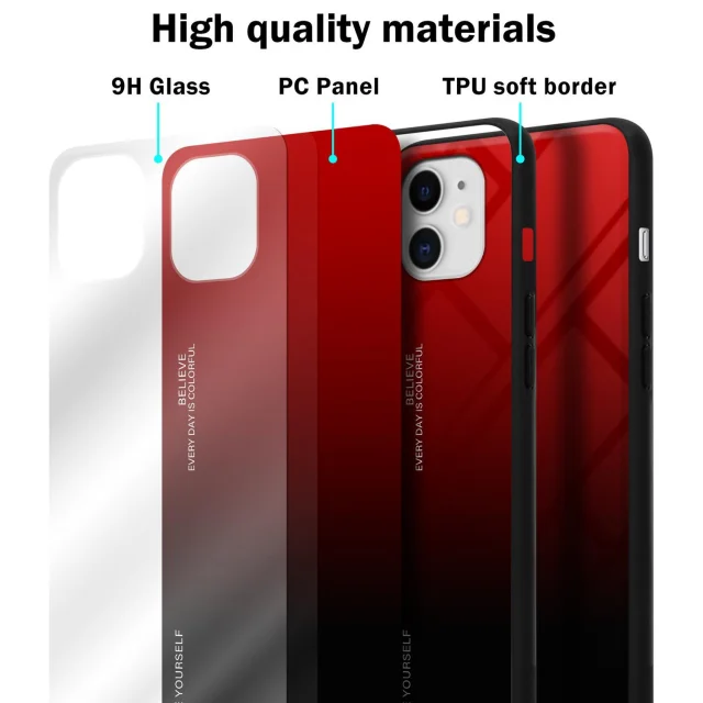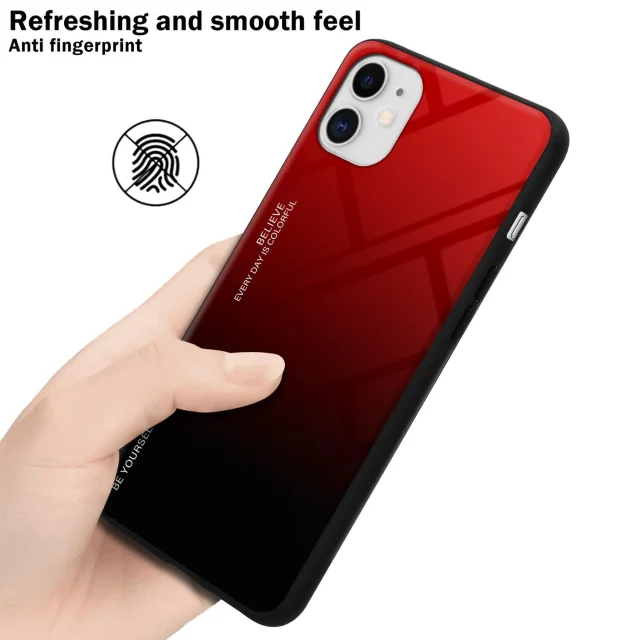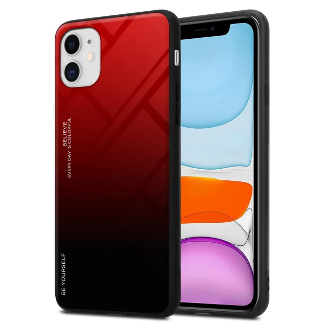 CADORABO Ohišje, združljiv z jabolkom v rdeči barvi - črni - dvobarvni zaščitni pokrov iz silikona TPU in hrbta iz kaljenega stekla