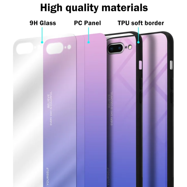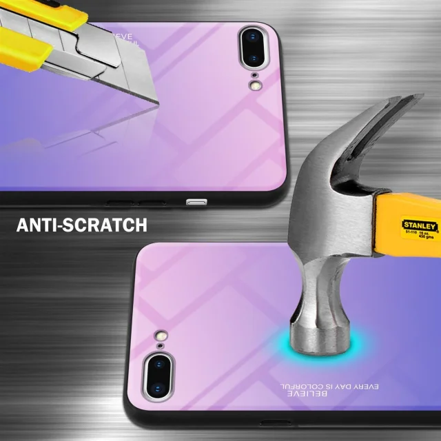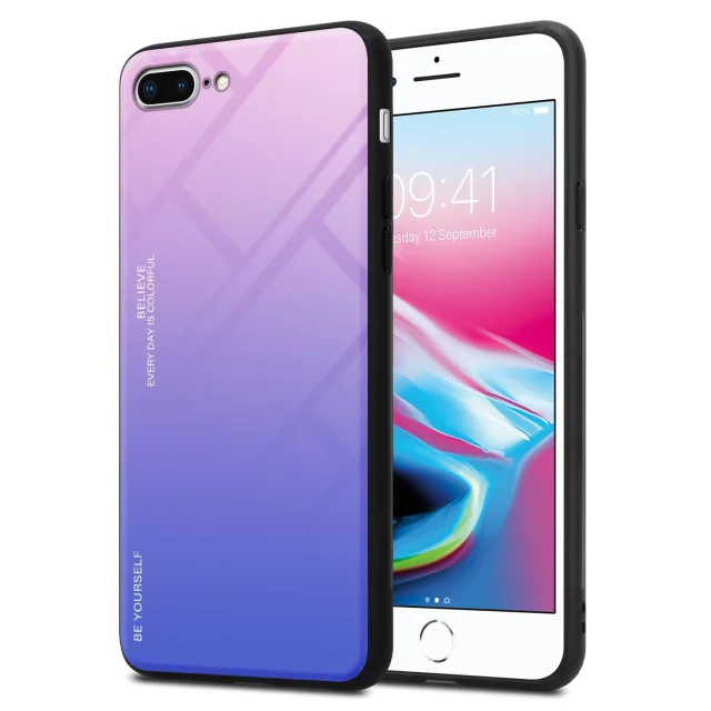 CADORABO Ohišje, združljiv z jabolkom v roza - modri - dvobarvni zaščitni pokrov iz silikona TPU in hrbta iz kaljenega stekla