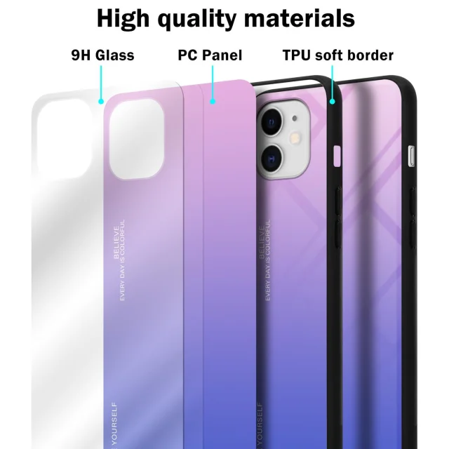 CADORABO Ohišje, združljiv z jabolkom v roza - modri - dvobarvni zaščitni pokrov iz silikona TPU in hrbta iz kaljenega stekla