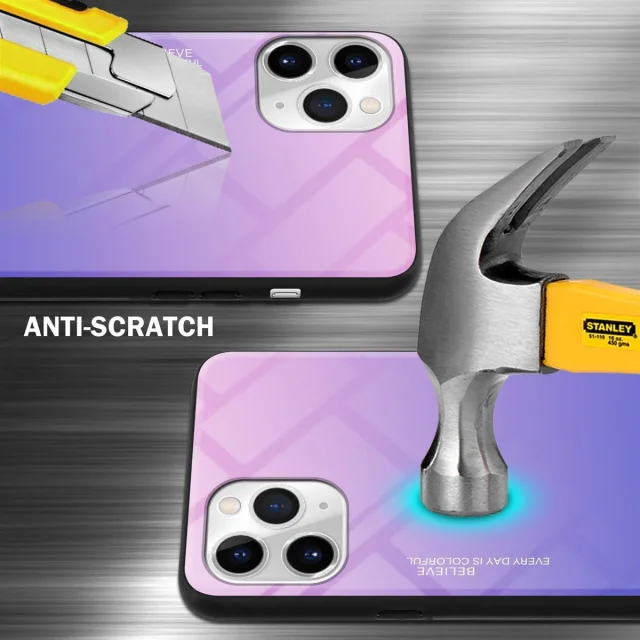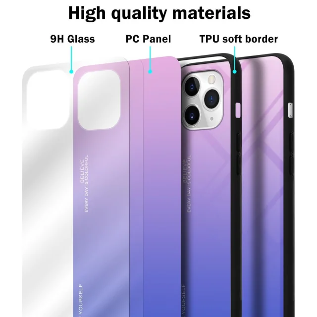 CADORABO Ohišje, združljiv z jabolkom v roza - modri - dvobarvni zaščitni pokrov iz silikona TPU in hrbta iz kaljenega stekla