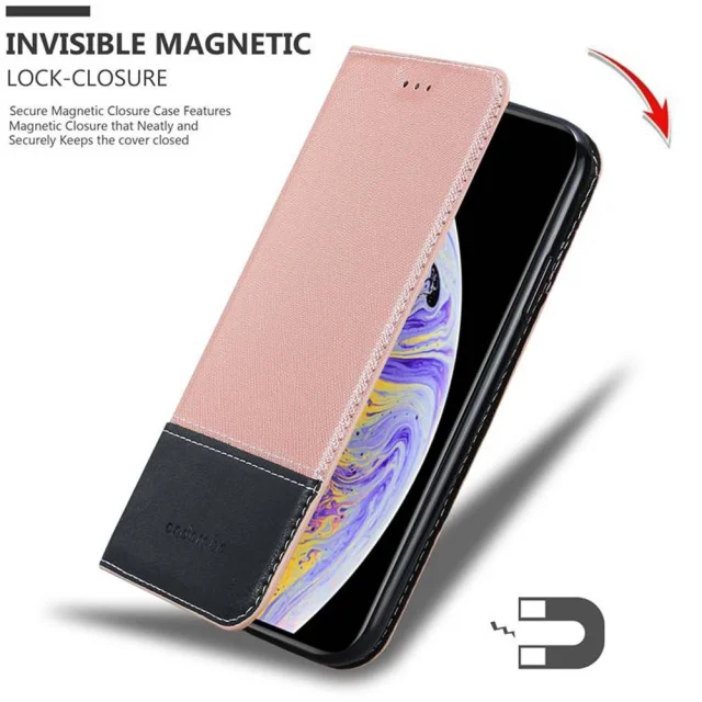 CADORABO Ohišje, združljiv z jabolkom v rožnatih zlatu črni barvi - zaščitni pokrov z magnetnim zapiranjem, stoječo funkcijo in režo za kartico