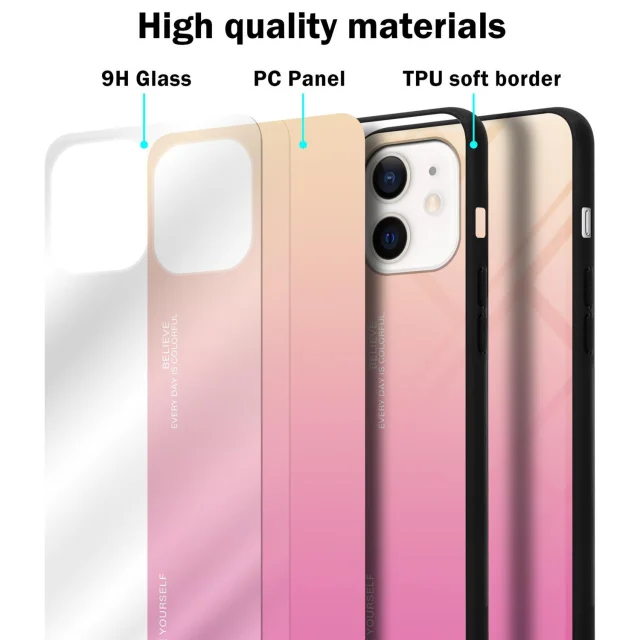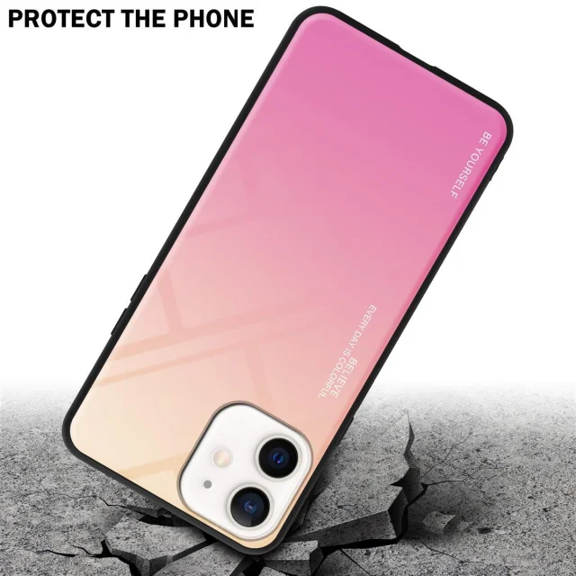 CADORABO Ohišje, združljiv z jabolkom v rumeni - roza - dvobarvni zaščitni pokrov iz silikona TPU in hrbta iz kaljenega stekla