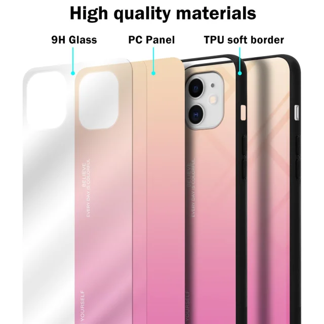 CADORABO Ohišje, združljiv z jabolkom v rumeni - roza - dvobarvni zaščitni pokrov iz silikona TPU in hrbta iz kaljenega stekla