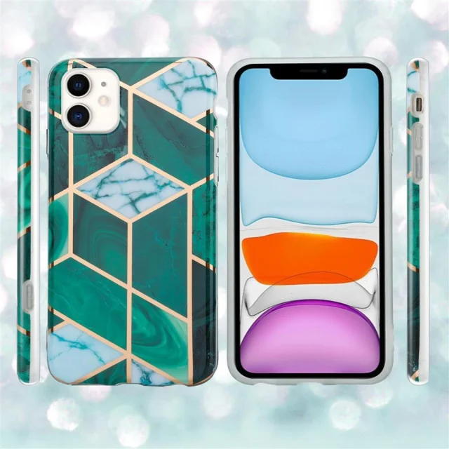 CADORABO Ohišje, združljiv z jabolkom v temno zelenem marmorju iz belega zlata št. 6 - Zaščitni pokrov iz silikona TPU z vzorcem mozaikom