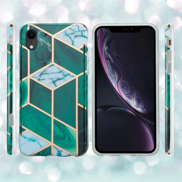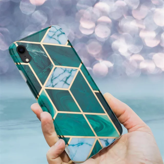 CADORABO Ohišje, združljiv z jabolkom v temno zelenem marmorju iz belega zlata št. 6 - Zaščitni pokrov iz silikona TPU z vzorcem mozaikom