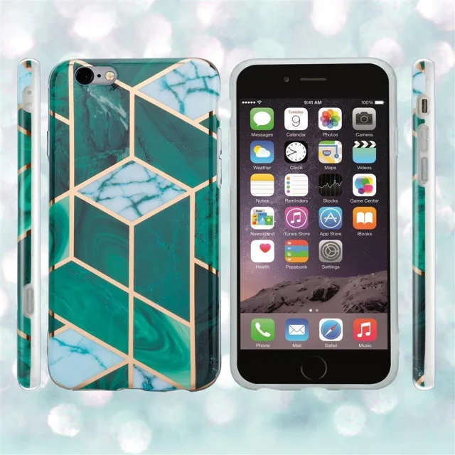 CADORABO Ohišje, združljiv z jabolkom v temno zelenem marmorju iz belega zlata št. 6 - Zaščitni pokrov iz silikona TPU z vzorcem mozaikom