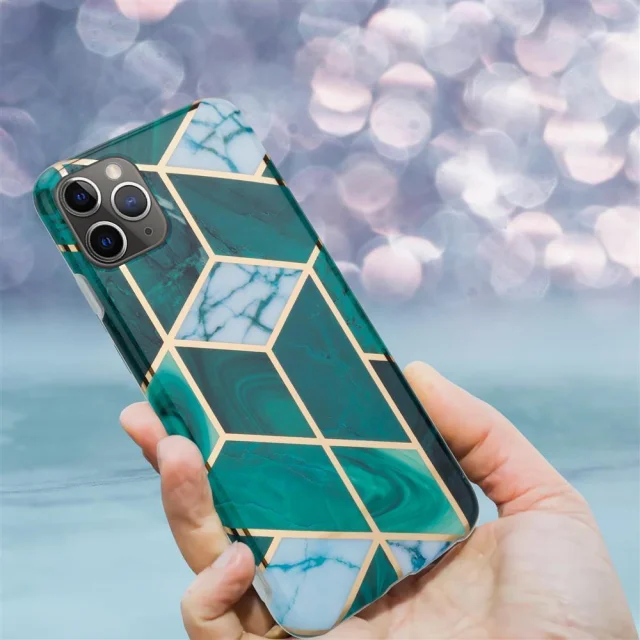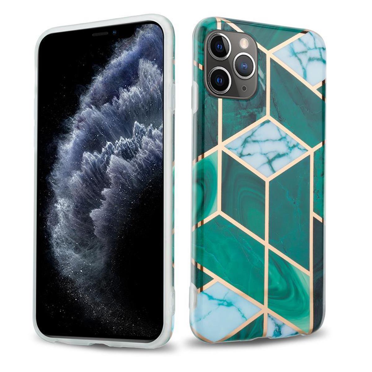 CADORABO Ohišje, združljiv z jabolkom v temno zelenem marmorju iz belega zlata št. 6 - Zaščitni pokrov iz silikona TPU z vzorcem mozaikom