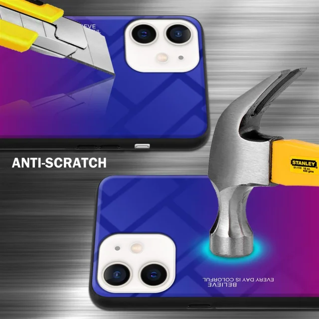 CADORABO Ohišje, združljiv z jabolkom v vijolični - rdeči - dvobarvni zaščitni pokrov iz silikona TPU in hrbta iz kaljenega stekla