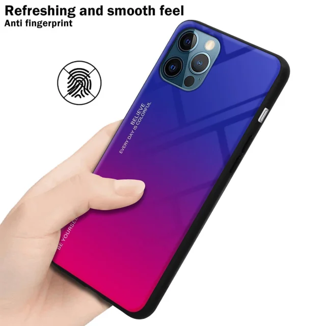 CADORABO Ohišje, združljiv z jabolkom v vijolični - rdeči - dvobarvni zaščitni pokrov iz silikona TPU in hrbta iz kaljenega stekla
