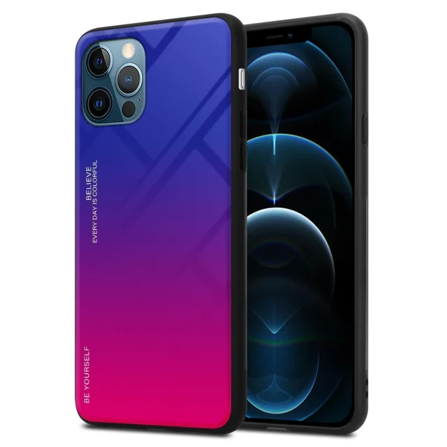 CADORABO Ohišje, združljiv z jabolkom v vijolični - rdeči - dvobarvni zaščitni pokrov iz silikona TPU in hrbta iz kaljenega stekla
