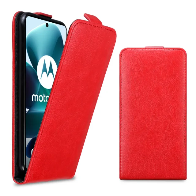 CADORABO Ohišje, združljiv z Motorolo v Apple Red - Zaščitni pokrov v zasnovi Flip z magnetnim zapiranjem