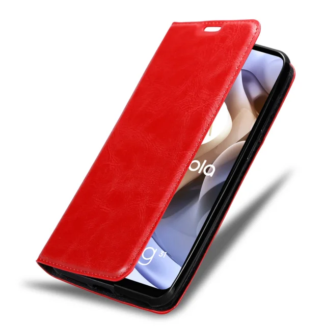 CADORABO Ohišje, združljiv z Motorolo v Apple Red - Zaščitni pokrov z magnetnim zapiranjem, stoječo funkcijo in režo za kartico