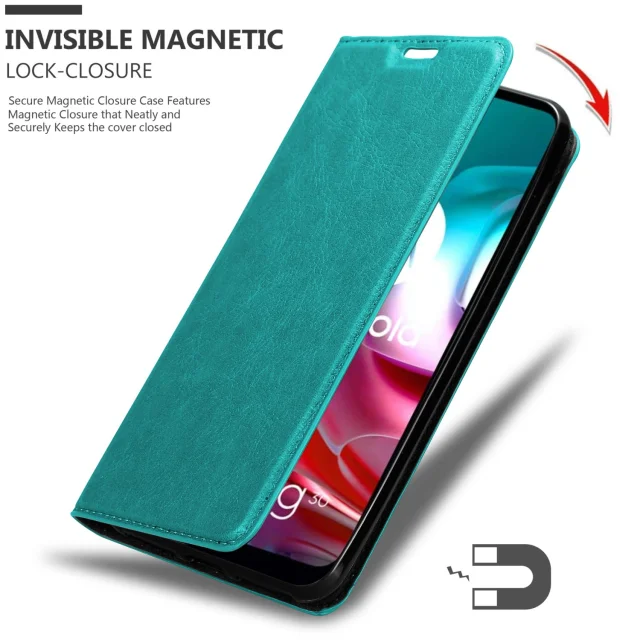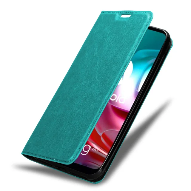 CADORABO Ohišje, združljiv z Motorolo v bencinski turkiznici - zaščitni pokrov z magnetnim zapiranjem, stoječo funkcijo in režo za kartico