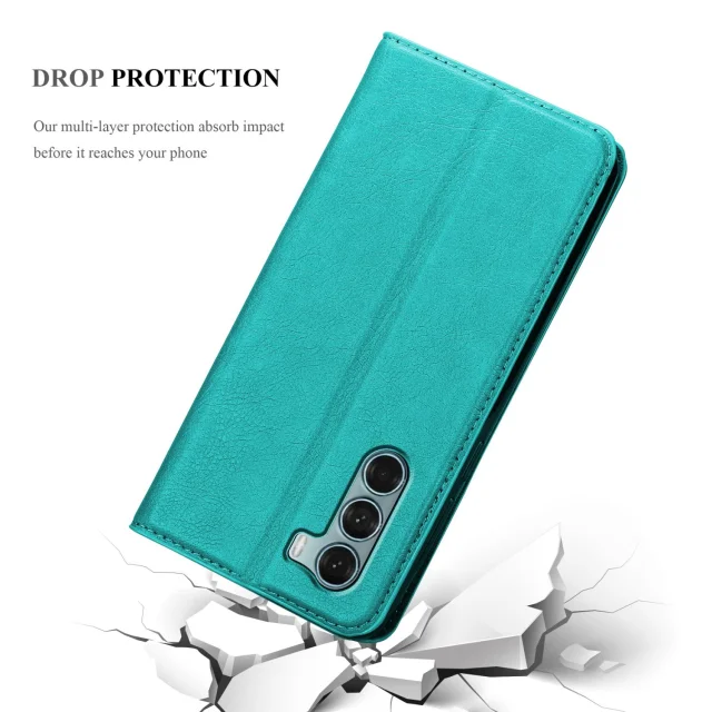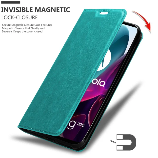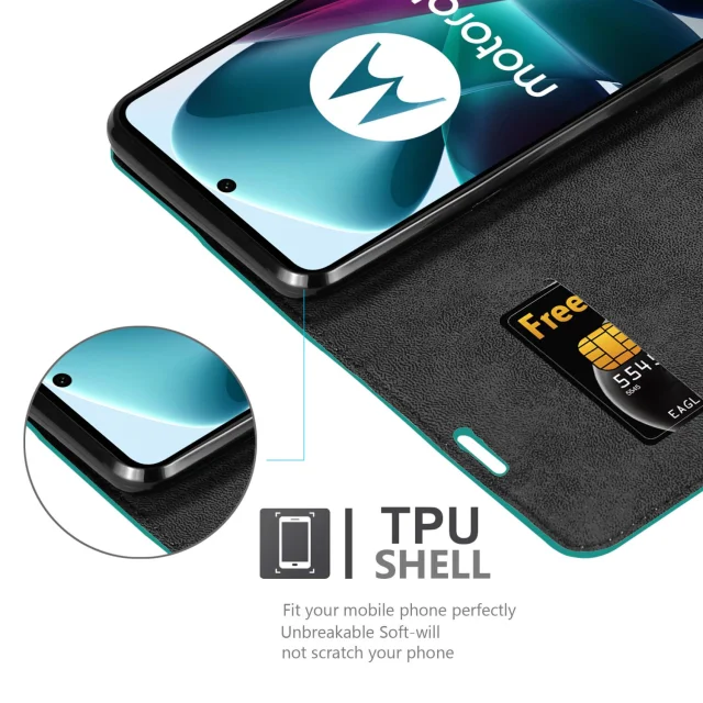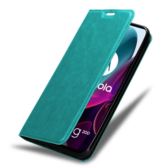 CADORABO Ohišje, združljiv z Motorolo v bencinski turkiznici - zaščitni pokrov z magnetnim zapiranjem, stoječo funkcijo in režo za kartico