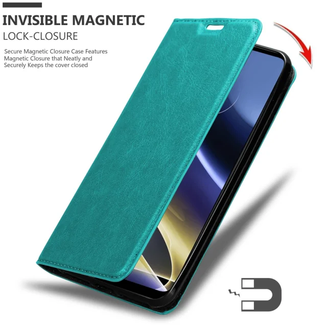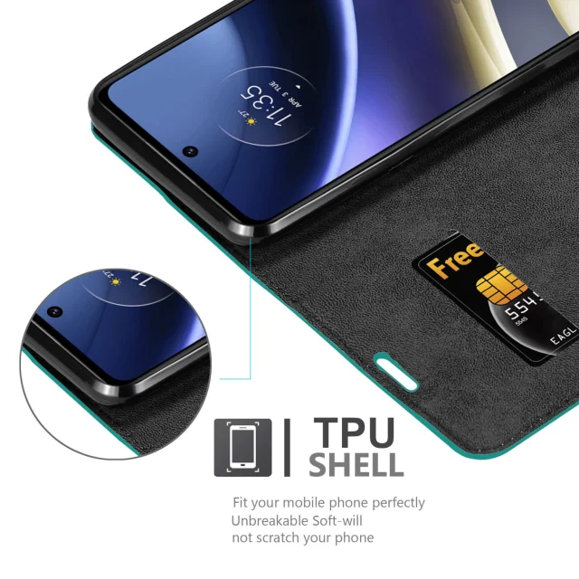 CADORABO Ohišje, združljiv z Motorolo v bencinski turkiznici - zaščitni pokrov z magnetnim zapiranjem, stoječo funkcijo in režo za kartico