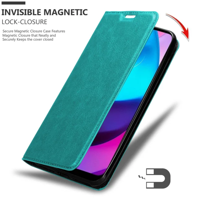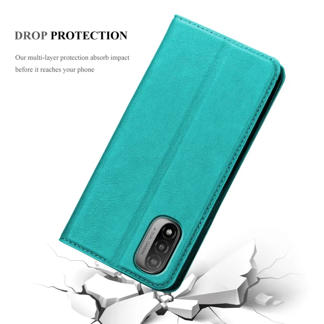 CADORABO Ohišje, združljiv z Motorolo v bencinski turkiznici - zaščitni pokrov z magnetnim zapiranjem, stoječo funkcijo in režo za kartico