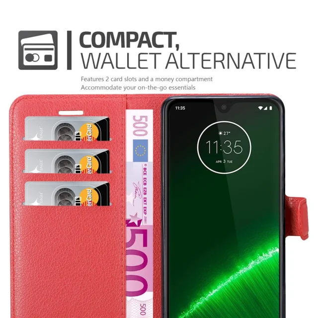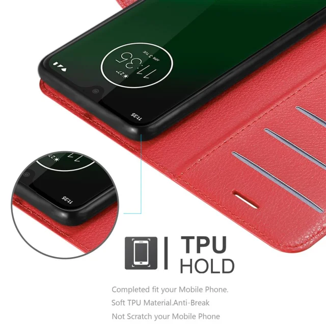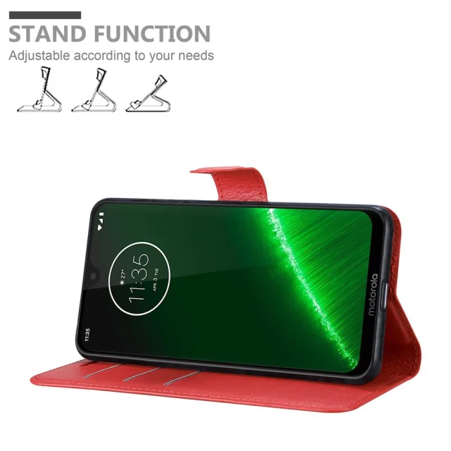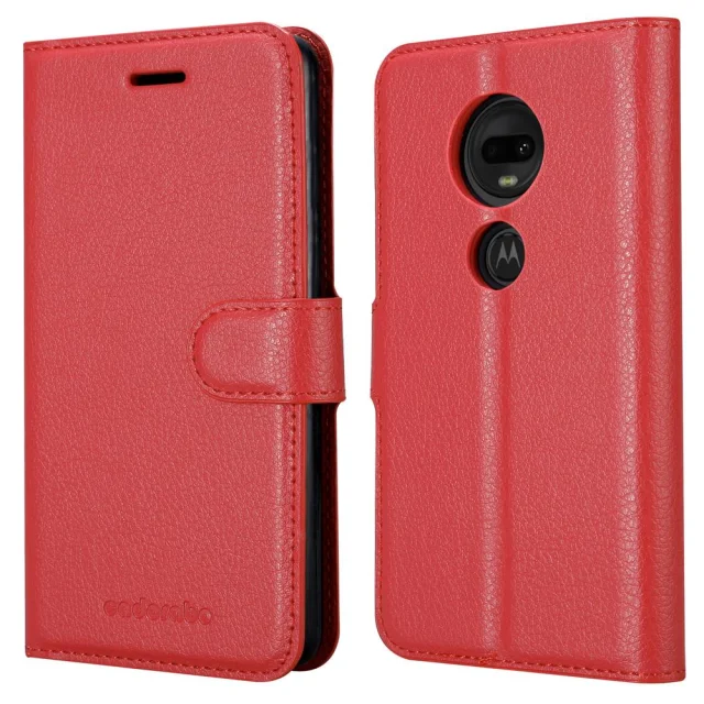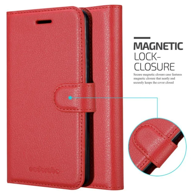CADORABO Ohišje, združljiv z Motorolo v Candy Apple Red - Zaščitni pokrov z magnetnim zapiranjem, stoječo funkcijo in režo za kartico