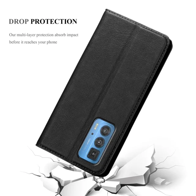 CADORABO Ohišje, združljiv z Motorolo v nočni črni barvi - zaščitni pokrov z magnetnim zapiranjem, stoječo funkcijo in režo za kartico