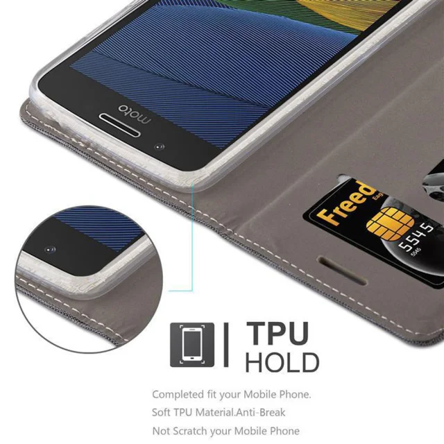 CADORABO Ohišje, združljiv z Motorolo v sivi črni barvi - zaščitni pokrov z magnetnim zapiranjem, stoječo funkcijo in režo za kartico