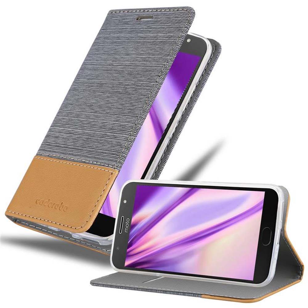 CADORABO Ohišje, združljiv z Motorolo v svetlo sivo rjavi barvi - zaščitni pokrov z magnetnim zapiranjem, stoječo funkcijo in režo za kartico