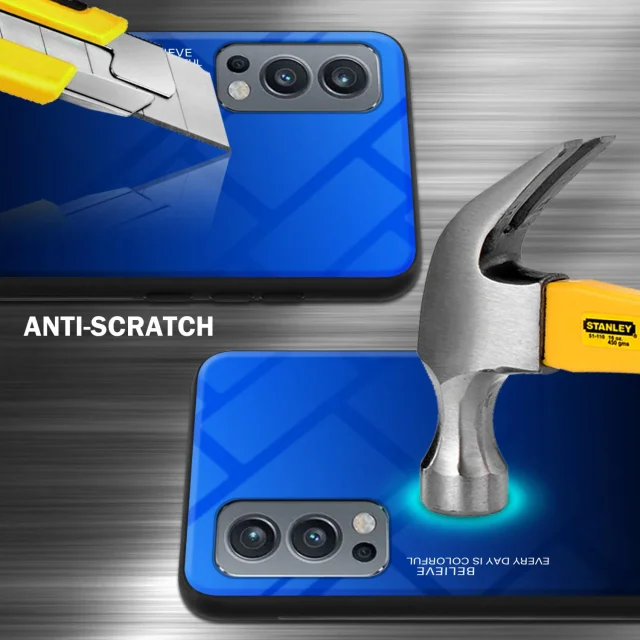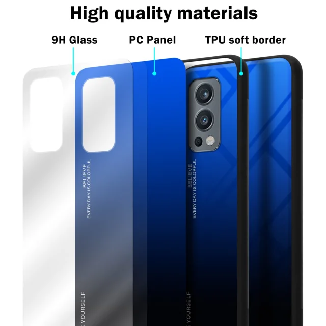 CADORABO Ohišje, združljiv z OnePlus v modri barvi - črni - dvobarvni zaščitni pokrov iz silikona TPU in hrbta iz kaljenega stekla