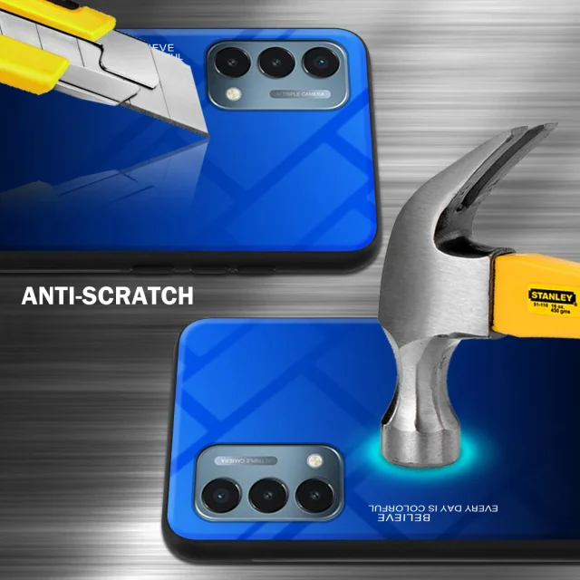 CADORABO Ohišje, združljiv z OnePlus v modri barvi - črni - dvobarvni zaščitni pokrov iz silikona TPU in hrbta iz kaljenega stekla
