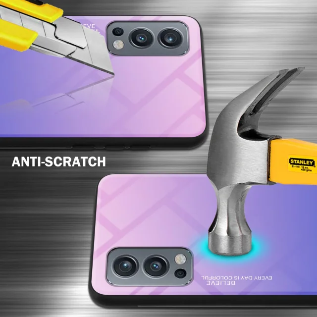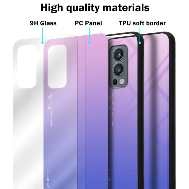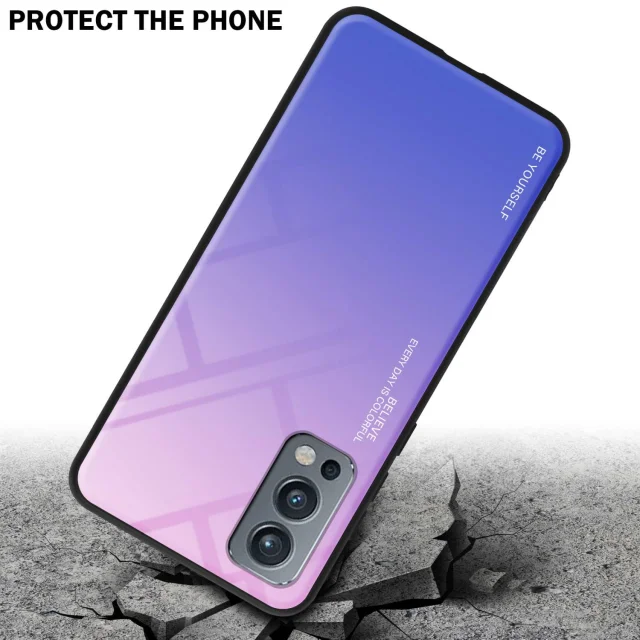 CADORABO Ohišje, združljiv z OnePlus v roza - modri - dvobarvni zaščitni pokrov iz silikona TPU in hrbta iz kaljenega stekla