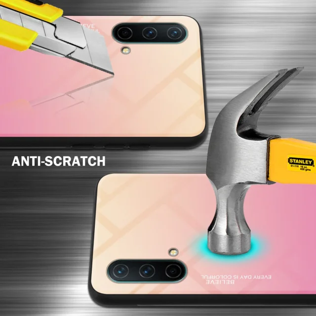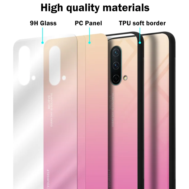 CADORABO Ohišje, združljiv z OnePlus v rumeni - roza - dvobarvni zaščitni pokrov iz silikona TPU in hrbta iz kaljenega stekla